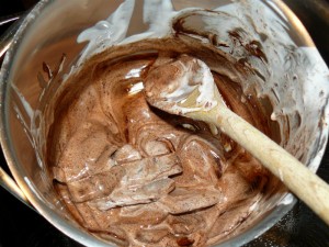 Sciogliere a bagnomaria il cioccolato fondente con la panna da cucina.